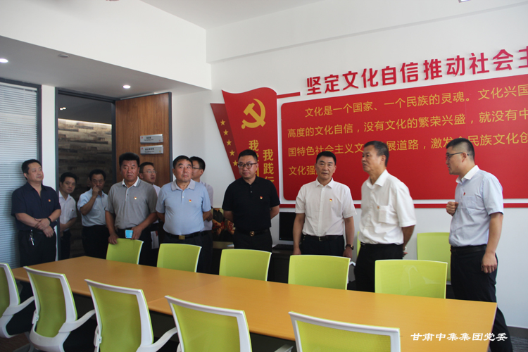 調研組一行首先參觀了集團公司黨委宣傳陣地、黨員活動室、談心談話室、閱覽室、健身中心等,通過查看黨支部建設標準化資料、聽取專題工作匯報和現場交談后,韓 旭副局長對甘肅中集集團黨委創(chuàng)新工作思路給予充分肯定,重點對黨支部建設標準化、樓宇黨建工作特色和亮點,特別是集團公司黨委開辟了非公經濟組織黨建工作的新路子、在開展 “三崗聯創(chuàng)”、“三亮”、“立足崗位做貢獻”等活動中取得優(yōu)異成績給予充分肯定。他強調:“甘肅中集集團黨委黨建工作抓住了非公企業(yè)黨建存在問題的關鍵,充分發(fā)揮了黨組織的政治優(yōu)勢和組織優(yōu)勢,通過黨員隊伍建設和加強組織力,提高了企業(yè)經營管理水平,黨建各項工作求真務實,開拓創(chuàng)新”。他現場向西北五省、市非公黨建負責人強調:“要以此次觀摩為契機,認真學習借鑒甘肅中集集團黨委的成功經驗和做法,特別是把黨支部建設在樓宇、打造紅色紐帶工程和深入推進黨支部建設標準化、強化組織建設、創(chuàng)新活動方式、營造非公經濟組織黨建工作的濃厚氛圍、為提升樓宇總部經濟高質量發(fā)展提供堅強的政治保障和組織保障方面要大力學習和推廣!