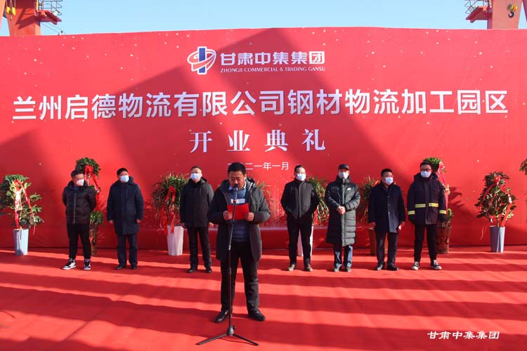2021年1月12日上午10:18分,甘肅中集實(shí)業(yè)集團(tuán)有限公司旗下蘭州啟德物流有限公司河口鋼材物流加工園區(qū)開(kāi)業(yè)慶典在甘肅物產(chǎn)集團(tuán)河口物流園隆重舉行。甘肅中集實(shí)業(yè)集團(tuán)有限公司黨委書(shū)記、董事長(zhǎng)周啟濤隆重宣布物流園開(kāi)業(yè)。酒鋼集團(tuán)、八一鋼鐵集團(tuán)、內(nèi)蒙古包鋼集團(tuán)、甘肅省物產(chǎn)集團(tuán)河口物流園、甘肅省鋼材商會(huì)、物流園轄區(qū)及公司合作伙伴等100余名領(lǐng)導(dǎo)嘉賓參加開(kāi)業(yè)慶典。