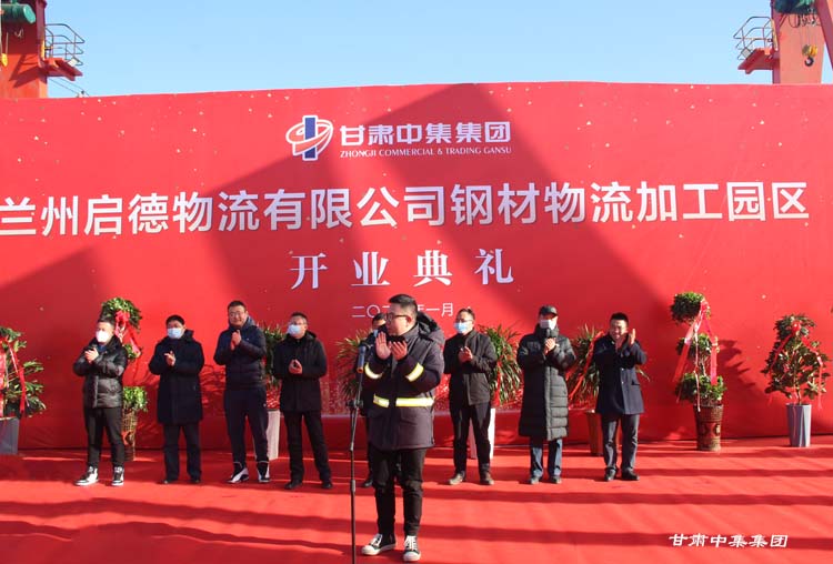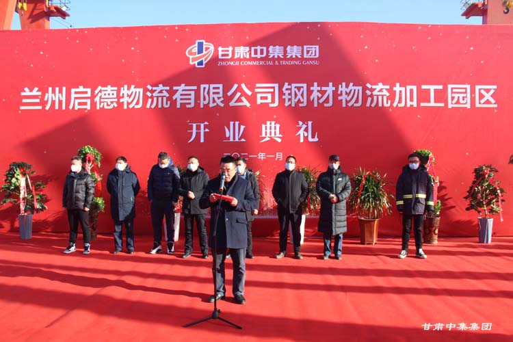 2021年1月12日上午10:18分,甘肅中集實(shí)業(yè)集團(tuán)有限公司旗下蘭州啟德物流有限公司河口鋼材物流加工園區(qū)開業(yè)慶典在甘肅物產(chǎn)集團(tuán)河口物流園隆重舉行。甘肅中集實(shí)業(yè)集團(tuán)有限公司黨委書記、董事長周啟濤隆重宣布物流園開業(yè)。酒鋼集團(tuán)、八一鋼鐵集團(tuán)、內(nèi)蒙古包鋼集團(tuán)、甘肅省物產(chǎn)集團(tuán)河口物流園、甘肅省鋼材商會、物流園轄區(qū)及公司合作伙伴等100余名領(lǐng)導(dǎo)嘉賓參加開業(yè)慶典。