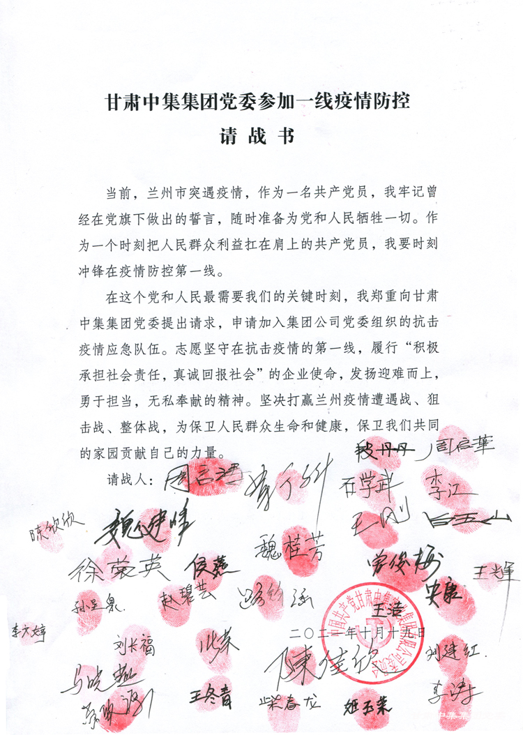 請(qǐng)黨放心,抗疫有我。甘肅中集集團(tuán)勇?lián)鐣?huì)責(zé)任,積極參與疫情防控各項(xiàng)工作,為疫情防控貢獻(xiàn)了“甘肅中集”力量、注入了“甘肅中集”暖流,充分彰顯甘肅中集集團(tuán)大愛(ài)擔(dān)當(dāng)及應(yīng)盡社會(huì)職責(zé)。