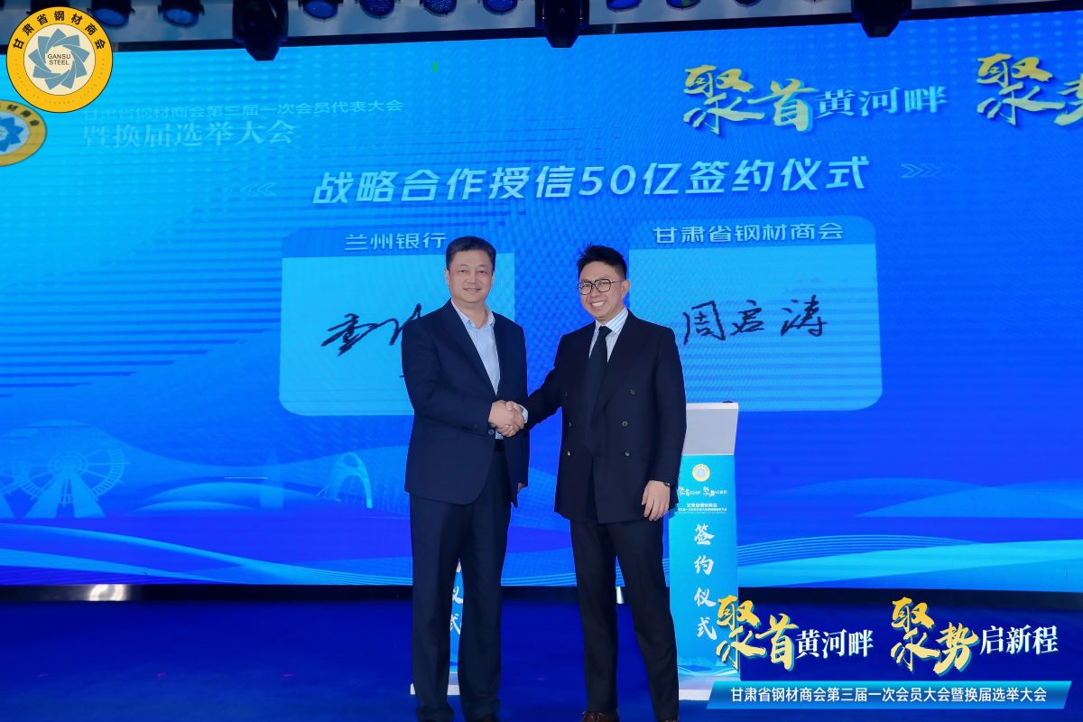 在合作交流環(huán)節(jié),甘肅省鋼材商會分別與甘肅省陜西商會、甘肅省城市建設(shè)商會、甘肅省青年企業(yè)家商會、甘肅省投資商會舉行友好商會簽約儀式,并分別與上海鋼聯(lián)電子商務(wù)有限公司(我的鋼鐵網(wǎng))達成戰(zhàn)略合作協(xié)議,并與蘭州銀行成功簽訂50億元授信協(xié)議,為甘肅省鋼材商會及會員發(fā)展提供資金、平臺、戰(zhàn)略合作的多方支持。