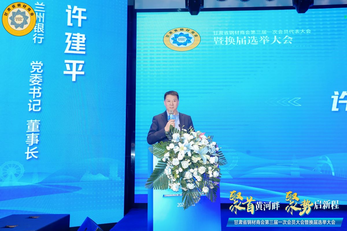 省委統(tǒng)戰(zhàn)部副部長、省工商聯(lián)黨組書記劉全平、省工商聯(lián)副主席、省總商會黨委書記朵雪青,省民政廳、省工商聯(lián)相關(guān)負責(zé)人,蘭州銀行黨委書記、董事長許建平、浙商銀行蘭州分行黨委書記、行長張 禹以及蘭州銀行、浙商銀行、中國銀行、甘肅銀行、甘肅省農(nóng)村信用社聯(lián)合社等金融機構(gòu)相關(guān)負責(zé)人,酒鋼、寧鋼、包鋼、八鋼等鋼廠業(yè)務(wù)負責(zé)人,上海鋼聯(lián)、蘭格集團等鋼材貿(mào)易平臺機構(gòu)負責(zé)人,甘肅省青年企業(yè)家商會、甘肅省城市建設(shè)商會、甘肅省投資商會、甘肅省陜西商會、甘肅省湖南商會、長江商學(xué)院甘青寧校友會等商會會長、會員代表和甘肅省鋼材商會會員200余人參加大會。