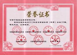 圖6:集團(tuán)登記證 圖7:甘肅省私營(yíng)企業(yè)100強(qiáng)